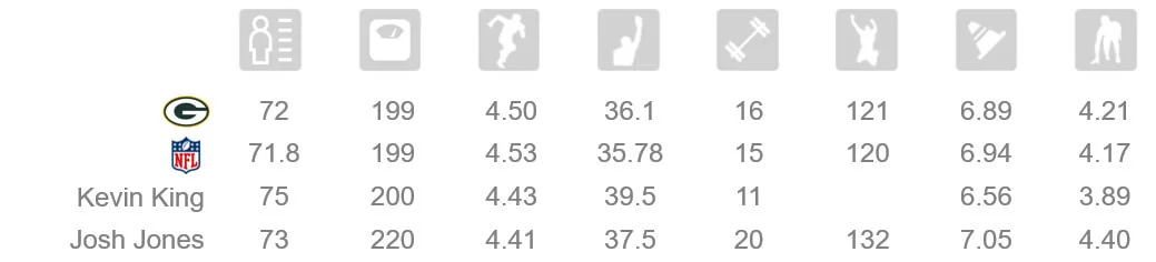 Here’s where the Packers seem to have really struck gold. Kevin King blows almost every measurable off the chart. He’s huge, fast, and incredible in the agility drills.