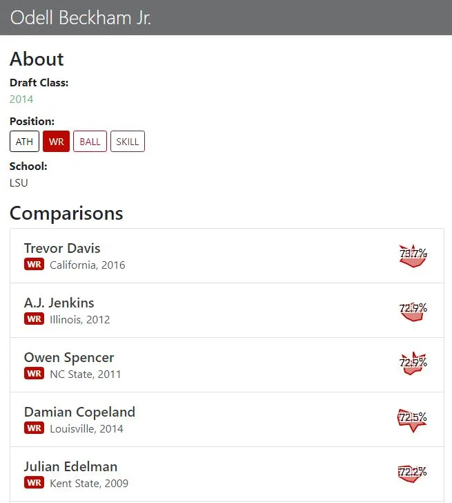 Mockdraftable uses the athletic profile of NFL players to draw comparisons between players. Punch in Beckham into the site and you’ll see the closest comparable player is Packers wide receiver Trevor Davis.