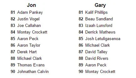Jon: I would put it like 52/48 in favor of Tripp. I don’t think either one has a strong case, since they’re both fairly replaceable, but Tripp is more of a known quantity and Dupre seems ripe for a case of training camp flu that would probably keep him on (VERY HEAVY AIR QUOTES) “injured reserve” all of next season.